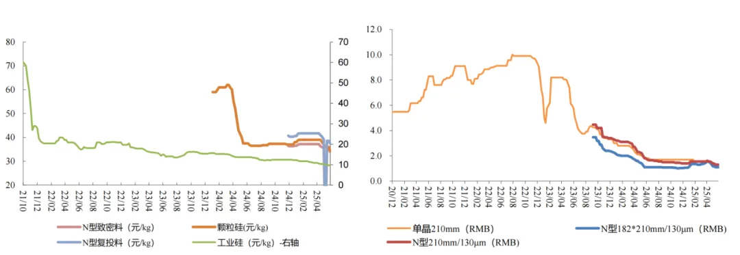 ポリシリコンは、太陽光発電産業チェーンの最上流工程であり、単結晶および多結晶シリコン材料の製造に使用される基本的な原料です。シリコンウェーハ分野では、江済グリーンエナジーと中環半導体が、技術革新への投資を継続的に増やし、生産プロセスを継続的に最適化し、生産能力拡大戦略を積極的に推進することで、シリコンウェーハ市場の供給構造を掌握することに成功しました。同社の製品は国内市場で広く使用されているだけでなく、海外の多くの国や地域にも輸出されています。シリコンウェーハ技術では、大型化と薄型化が主な発展傾向にあり、182mmと210mmの大型シリコンウェーハが主流市場となり、市場シェアは95%を超えています。同時に、TOPConやHITなどのN型セル技術の発展に伴い、N型シリコンウェーハの需要が急速に増加しており、2025年にはN型シリコンウェーハの市場シェアが50%を超えると予想されています。